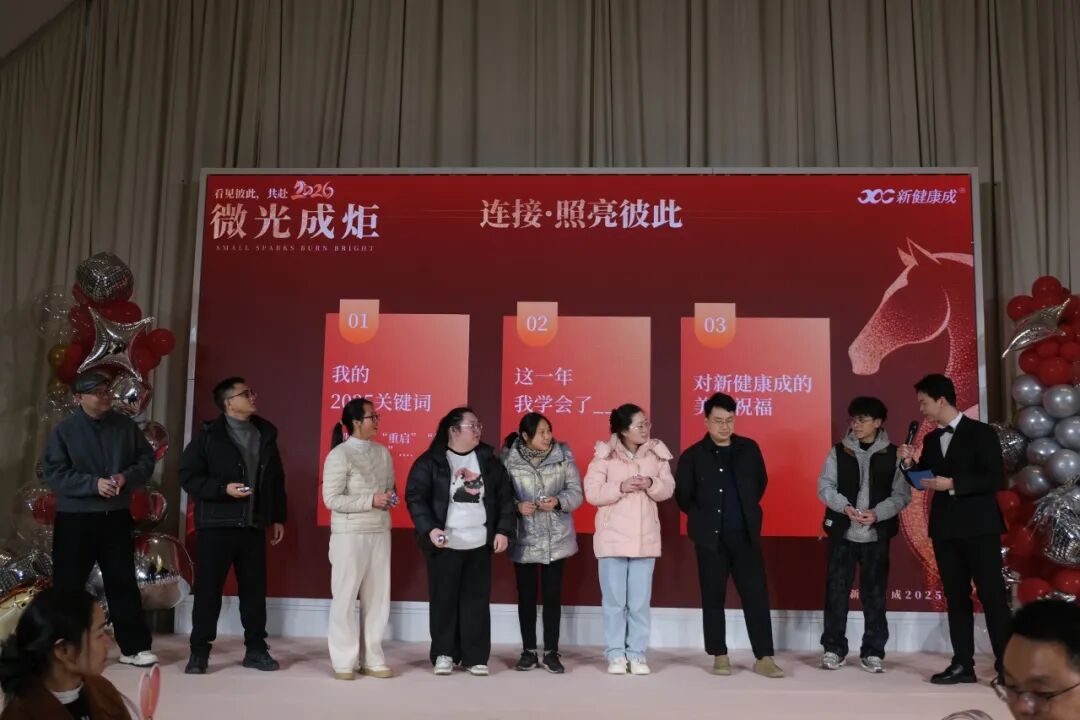 2026年1月,新健康成举行了2025年会。我们不做浮于表面的年终大联欢,不回避现实的艰难,更没有浮夸的胜利宣言。正如本次年会的主题:“微光成炬——看见彼此,共赴2026”,恰如其分地诠释着这场坦诚对话的核心:在行业深度调整期,我们以真实直面挑战,以联结凝聚合力,以行动锚定未来。